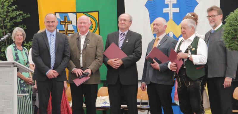 Bild: Fotofreunde Scheyern Gruppenfoto aller geehrten der Bürgermedaille Silber: Helmut Reim, Anton Brandstetter, Walter Häring, Georg Wagner (jeweils mit den Urkunden v.l.n.r)